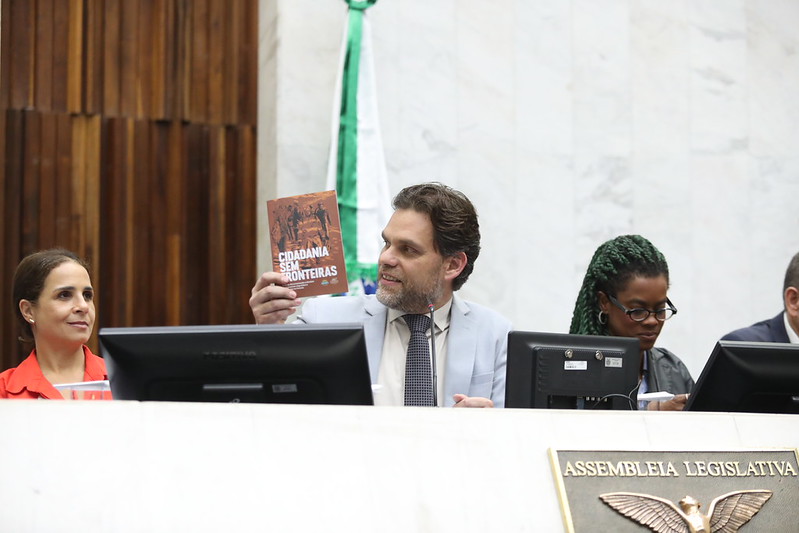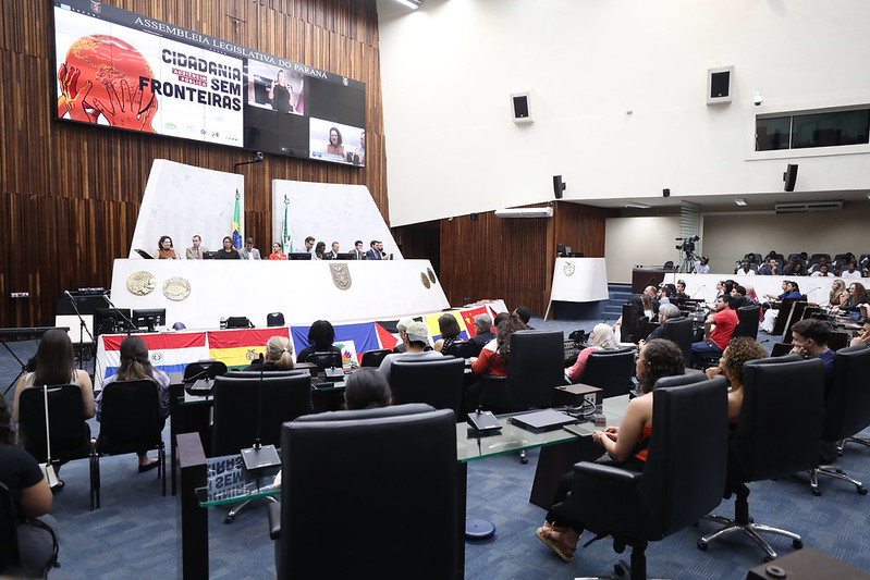 A Assembleia Legislativa do Paraná (Alep) realizou na tarde desta quarta-feira (19) um amplo debate sobre as políticas de acolhimento a migrantes e refugiados no Estado. Proposto e organizado pelo deputado Goura (PDT), a audiência pública “Cidadania sem Fronteiras” reuniu lideranças, gestores públicos, pesquisadores, professores universitários e representantes de entidades. O evento sediou o lançamento de uma cartilha dedicada a auxiliar quem busca recomeçar a vida no Paraná a ter acesso à documentação e aos direitos. O material foi produzido pela Assembleia Legislativa do Paraná, por meio do mandato do parlamentar.