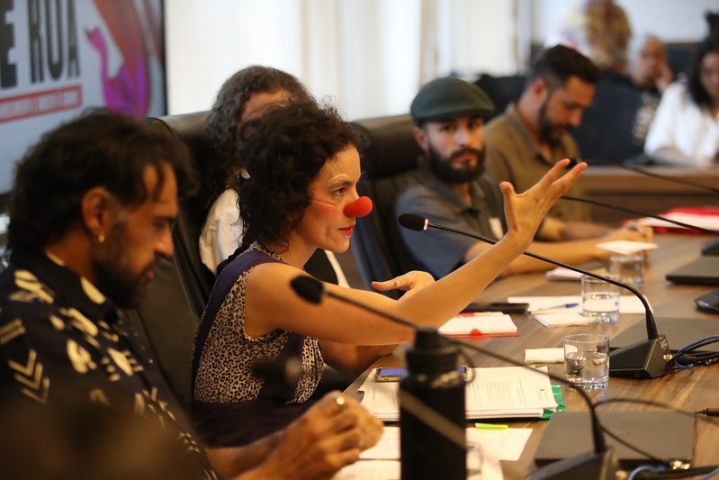 “A gente, enquanto artista de rua, depende de políticas que amparem o nosso fazer, que garantam o nosso direito à rua e também à população o acesso aos bens culturais que a gente pode oferecer. Então, acho que um espaço como esse, a gente vai discutir questões fundamentais como o reconhecimento do teatro de rua como patrimônio e material cultural do Brasil. Uma vez que a gente consegue avançar nesse caminho, a gente também vai ter uma salvaguarda do Estado e da Federação. A gente é criminalizada constantemente. Algumas legislações são feitas para, em vez de favorecer o nosso fazer, ser impeditivas, ser castradoras. Então, a gente pretende estabelecer esse diálogo, porque a gente reconhece o mérito do que fazemos e queremos que a sociedade também reconheça”, afirma, destacando que a atuação dos artistas de rua muitas vezes é combatida por leis e normas, especialmente na esfera municipal.